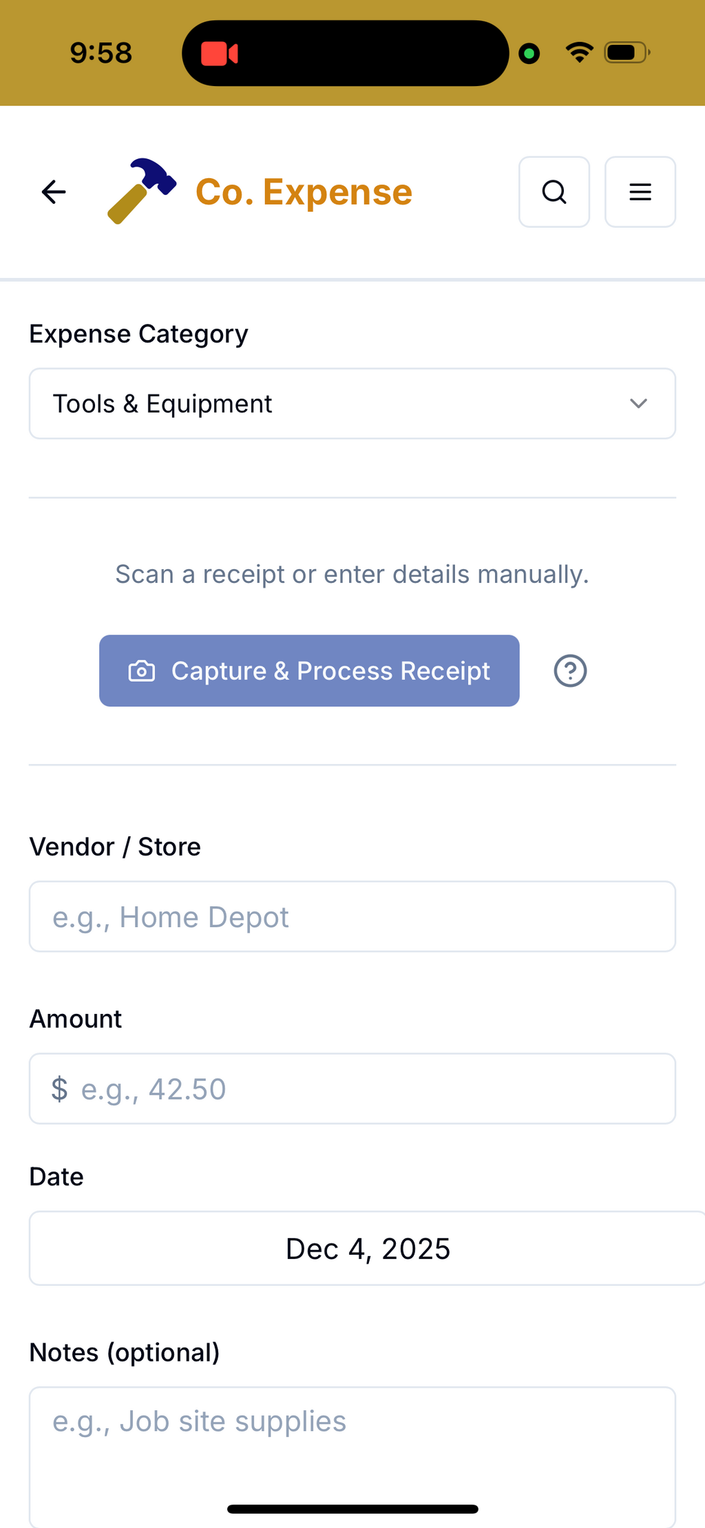 After you tap Add Expense: